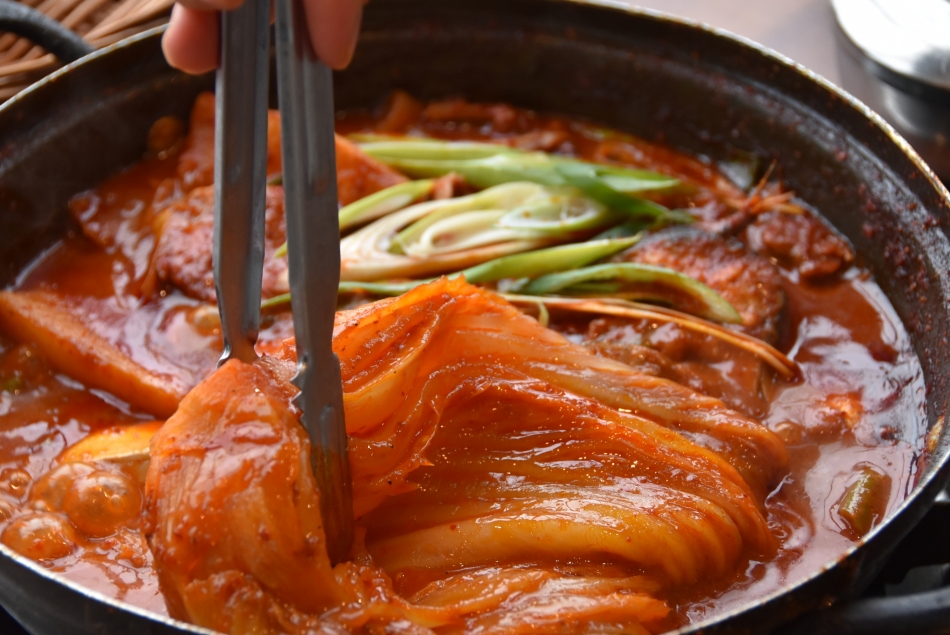 빛깔부터 먹음직스러운 묵은지는 가위로 적당한 크기로 잘라두었습니다. 묵은지의 결을 따라 찢어서 먹으면 더 맛있겠지만 빨리 먹고 싶었습니다.