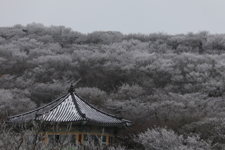 나무 위에 쌓인 눈은 아직 완전히 녹지 않아서 수묵화 같은 풍경을 만들어내고 있었습니다. 한국적인 정취가 느껴지는 경치였습니다.